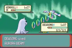 Dewgong forms a multicolored orb of energy in front of its mouth. It then fires a multicolored beam from the orb at the opponent. | ||
