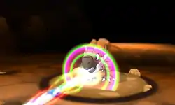 | The user fires a multicolored beam at the foe. | |||