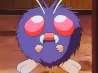 Venonat reappeared in Ash's flashback in Bad To The Bone, when he remembered how he obtained his Gym Badges. In Ariados, Amigos, Aya used Venonat in a rematch against Ash, who used Bulbasaur again. Like before, Venonat lost the battle. It was also later used to battle and defeat Team Rocket who had stolen Poké Balls from the dojo. Venonat's known moves are Stun Spore, Psybeam, Poison Sting*, Tackle, Supersonic, and Rest. | ||