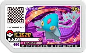 Azelf (Japanese: アグノム Agnome) is a Grade 4 Pokémon Ga-Olé disk. It is part of the fourth Ultra Legend set.