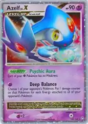 Azelf (Japanese: アグノム Agnome) is a Psychic-type Level-Up Pokémon LV.X card. It is part of the Legends Awakened expansion.
