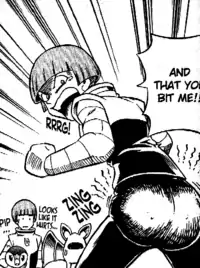 - Since B-2's appearance, it has been a gag that every time he appears, something will happen to his buttocks.