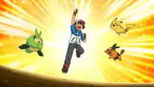 - Ash's Sewaddle evolves into Swadloon and learns Energy Ball.