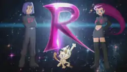 - The Team Rocket motto that debuts in this episode was first seen in a preview prior to the debut of Pokémon the Series: Black & White. However, in the preview, Team Rocket were still wearing their black uniforms as opposed to the white uniforms that returned in this episode. Whether this episode was originally meant to feature the black uniforms or not is unknown.