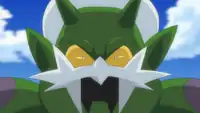 Meanwhile at a distance, Team Rocket is watching the whole battle take place. Team Rocket discusses how they will let the Pokémon wear themselves out and execute their plan when the time is right. Pikachu and Stunfisk try to use a combined Thunder Shock and Thunderbolt on Tornadus, but he blocks the attacks. Tornadus and Thundurus are both proving to be too strong and are damaging everyone's Pokémon. Lewis asks Gothorita to use her powers to try to communicate everyone's feelings to them, but it doesn't work and they keep attacking each other. From the disturbance, lightning sparks raging forest fires across Milos Island, and the sea becomes choppy.