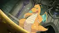 - In a recurring error, the first time Iris's Dragonite is released from his Poké Ball, his antennae are briefly the same orange color as his body.
