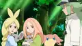 Meanwhile, in the forest, Ash and his friends watch as Anthea's Gothitelle puts an unconscious N in a pool of water, with the group wondering over the entire action. Ash proceeds to check on N, but Concordia's Gardevoir stops him. Iris then notices that N's wounds are healing up and he finally regains consciousness. He identifies the two girls with him, and the group seems confused that they know each other. Anthea and Concordia tell the young Trainers that they must leave the forest immediately and Gothitelle threatens them to kick them out using Psychic. But N tells them to let Ash and his friends stay here for a while, saying that they have strong friendships with Pokémon. Anthea and Concordia happen to notice the strong bond when Axew and Pikachu play with their Trainers and are pleased about their Pokémon loving them. The group realizes the two have a same inner voice as N does. The group then notices a house in front of them, full of different types of Pokémon. N explains that the place is his and the girl's temporary hideout.