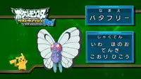 As they walk up towards the mountains, Ash is very excited to see what new Pokémon he can find, which Iris is all too familiar with. Suddenly they run into a patch of Metapod, which Ash scans with his Pokédex. Just as soon as the dex entry is finished, the Metapod start to evolve. Once the Butterfree start to emerge, Ash scans Butterfree with his Pokédex also. Cilan says that this is the first time he has seen a Butterfree while Iris marvels at their beautiful wings. Iris and Ash both notice that the Butterfree are about to begin their migration, and sure enough, they all take off. Ash even notices a second flock of Butterfree flying away from a different location. Everyone is in awe, with Cilan commenting that nature is showing it's delicious recipe for perfection.