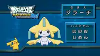 Setting off to locate Jirachi, the group reaches the "Shrine of the Lake". Gemma explains that the "Shrine of the Mountain", located atop the mountain, is the place where Jirachi will grant her a wish. Gemma then leads them to a place where many wild Pokémon live, in the hope that Jirachi might come there as well. As suspected, Jirachi turns up. Gemma gets excited upon seeing it and decides to confront the Pokémon but Cilan stops her, stating that their movements might scare Jirachi again. Pikachu and Axew then approach the wild Pokémon and befriend them, before inviting Jirachi to eat with them as well, to which it agrees. Gemma now fails to resist the urge and runs to confront Jirachi. The Wish Pokémon however gets nervous and tries to flee. Gemma asks it to stop, but Jirachi responds by using Swift and flees away, much to Gemma’s disappointment.