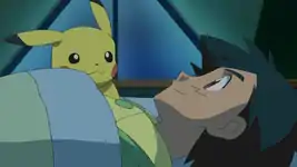 Late that night, as he lies in bed, Ash finds that he can't sleep with the excitement of the upcoming adventure. He then thanks Pikachu for always being there for him during his journey and asks his best friend to always be there for him. Pikachu agrees and Ash promises himself that he'll get a lot stronger in Kalos.