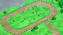 Later, Team Rocket came by and infiltrated the storage room full of cheese. One of the workers caught them and told Grace about the theft. The group temporarily left the ranch with Ash, Bonnie, and Clemont riding Skiddo and Serena riding a Rhyhorn. After successfully getting the cheese back, the group returned to Baa de Mer Ranch and Grace had a Skiddo race with Serena, with the condition that if Grace won, Serena would have to return home to continue training as a Rhyhorn racer. Despite falling off a Skiddo that Serena rode on, Serena was able to catch up to Grace and win the race. Following the race, the group left Baa de Mer Ranch and continued onto Coumarine City.