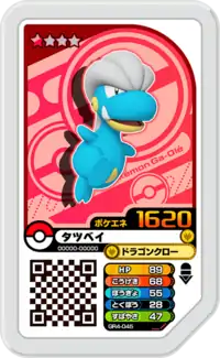 Bagon (Japanese: タツベイ Tatsubay) is a Grade 1 Pokémon Ga-Olé disk. It is part of the fourth Grand Rush set.