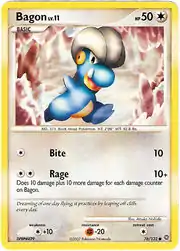 Bite and Rage are both moves in the Pokémon games that Bagon can learn. This card's Pokédex entry comes from Pokémon Diamond and Pearl.