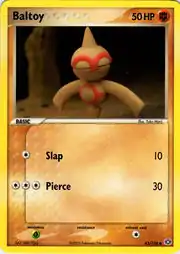 Baltoy (Japanese: ヤジロン Yajilon) is a Fighting-type Basic Pokémon card. It is part of the EX Emerald expansion.