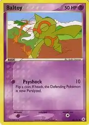 Baltoy (Japanese: ヤジロン Yajilon) is a Psychic-type Basic Pokémon card. It is part of the EX Hidden Legends expansion.