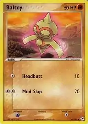 Baltoy (Japanese: ヤジロン Yajilon) is a Fighting-type Basic Pokémon card. It is part of the EX Hidden Legends expansion.