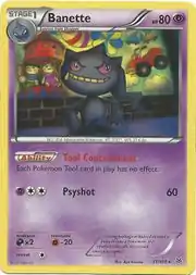 Banette (Japanese: ジュペッタ Jupetta) is a Psychic-type Stage 1 Pokémon card. It is part of the Roaring Skies expansion.