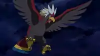 Braviary is one of Baraz's Pokémon. He first appeared in Hoopa — The Mischief Pokémon. During Baraz and Meray's search for the Prison Bottle, Baraz decided to look for it on his own. As such, he chose Braviary and went off on him. Continuing his flight on Braviary in Hoopa and the Clash of Ages, Braviary brought Baraz to a mysterious rock formation where the Prison Bottle was located. He would next fly Baraz to Dahara City.