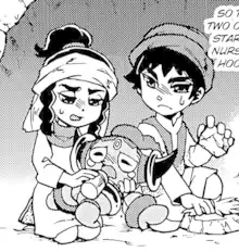 Baraz and Meray were born in Arche Valley as descendants of Ghris, a villager who had stopped Hoopa Unbound from destroying Dahara City and sealed away its evil power into the Prison Bottle one hundred years ago. When Hoopa transformed into Hoopa Confined, Ghris brought it with him to Arche Valley, where it would stay. From their birth on, Baraz and Meray grew up with Hoopa.