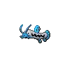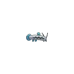 Barboach is a small, serpentine Pokémon that resembles a loach. The main body is a soft gray with a jagged black line running its length. Its eyes are very small, and it has a round, blue nose. It has several blue barbels that are used as a superb radar in murky water and can be used for taste as well. These whiskers are left exposed when it hides in the mud to wait for prey. There are two rounded, blue pectoral fins and a single dorsal fin, all of which have black spots. Its tail fin is also rounded and blue but possesses no spots. A slimy film covers its body, which protects Barboach from bacteria and allows it to easily escape from predators. Barboach remains in its aquatic environment to prevent itself from drying out and becoming weak.