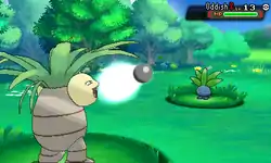 Exeggutor fires multiple light yellow seeds from its leaves at the opponent. | ||