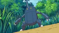 Later, he took Barry on a flight around Iron Island to see the cause of the Steel-type going haywire, including his Empoleon. Heracross was then hit by a Skarmory's Steel Wing, sending them falling onto Team Rocket. Heracross attacked Team Rocket as they were accused to be the ones behind all of this. However, after pointing out the machines located on the island, it turned out that another villainous team was the cause. The Galactic's Golbat attacked them with Air Cutter and severely damaged Heracross. Heracross reappeared in Historical Mystery Tour! battling Ash's Pikachu. Heracross was able to withstand Pikachu's attacks and became stronger from last time. The battle got interrupted when a Xatu flew by. Xatu lead the group to a tent owned by a Clown and they got sent to another world. When they woke up, they got separated and searched for their Pokémon. While Barry was looking for his Heracross, he found a tree. He had a flashback about the time he caught Heracross by slathering honey on a tree. He did the same thing this time and Heracross came up to Barry and the tree. Heracross's known moves are Megahorn, Fury Attack, Horn Attack, and Double-Edge. | ||