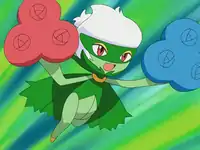 Roserade appeared again in Steeling Peace of Mind! where it battled Team Galactic, only for it to be hit by Golbat's Air Cutter. Roserade's only known move is Poison Jab. | ||