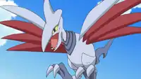 | Skarmory was the first Pokémon used in the Sinnoh League in his match against Paul, going up against Paul's Magmortar. In the first turn, Skarmory used Spikes on the field to damage Paul's Pokémon whenever they were sent out. Afterwards, it was easily knocked out by Magmortar's Flamethrower.