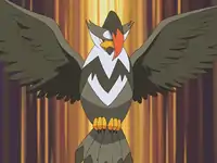 Staraptor appeared again in Steeling Peace of Mind! where it took on Team Galactic, only for it to get hit by Golbat's Sludge Bomb. Staraptor's known moves are Tackle, Close Combat, and Wing Attack. | ||