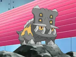 In High-tailing It from Haunter, Diamond's Shieldon, nicknamed "Don", evolved into a Bastiodon fighting several opponents at the Galactic Veilstone Building. Already a sturdy Pokémon before evolving, this solidified his strong defenses even more.
