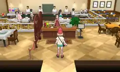 After clearing the game and dining five times at the Battle Buffet, a woman known as the buffet queen will appear when the player next enters the restaurant. She will challenge the player to a competition to see who can get more satisfaction from the buffet. If the player wins, she will confer the title of buffet queen/king on the player. The player must obtain the highest satisfaction level (a score of 50 or more) to beat her. If the player does not beat her, she will challenge the player again on their next visit. When the buffet queen is present, eating at the buffet is free, but the player cannot eat at the buffet without accepting her challenge and will not receive an item after completing their meal.