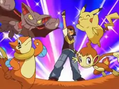- The second version, which debuted in The Lonely Snover! was widescreen and featured scenes from High Touch! and a clip from Pillars of Friendship!. The clip where Pikachu, Gliscor, Chimchar, and Buizel call out their names at the end was also removed.