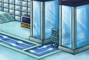 The Battle Factory (Japanese: バトルファクトリー Battle Factory) is a facility in the Generation IV Battle Frontier, having basically the same rules as Hoenn's Battle Frontier's Battle Factory. It is located on the northeast corner of the Battle Frontier. The blue building itself is much like a factory, with exhaust fans, and pipes. There is a long, glass panel on the floor of the building that transfers information around. There are Poké Balls containing rental Pokémon in glass storage panels inside, and there is an electronic battle ground that lights up before a battle begins. Like Hoenn's Battle Factory, it is more dedicated to research than the other facilities, and the subject of the scientists' research is the abilities of Trainers when using random Pokémon in battle.