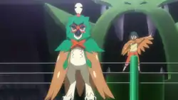 It appeared again in A Young Royal Flame Ignites!, where it fought alongside its Trainer in another Battle Royal against Primarina, Machamp, and a Revengers' Poliwrath. Decidueye's only known move is Spirit Shackle. | ||