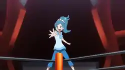 This female Trainer first appeared in Pushing the Fiery Envelope!. She battled the Masked Royal and two other Trainers in a Battle Royal, but lost to the Masked Royal when he used his Incineroar's Z-Move Malicious Moonsault to defeat all of its three opponents.