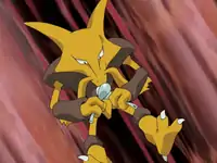 In Second Time's the Charm!, Ash had a rematch with Anabel. Again, she chose Alakazam as her first Pokémon. It went head to head again with Ash's Corphish once again, but this time with a little bit of luck as well as Ash's quick thinking, Alakazam was defeated by Corphish's Bubble Beam. Alakazam's known moves are Psychic, Psybeam, Focus Punch, and Recover. | ||