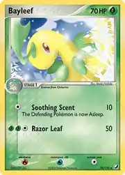 Bayleef (Japanese: ベイリーフ Bayleaf) is a Grass-type Stage 1 Pokémon card. It is part of the EX Unseen Forces expansion.