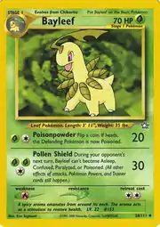 Bayleef (Japanese: ベイリーフ Bayleaf) is a Grass-type Stage 1 Pokémon card. It is part of the Neo Genesis expansion.