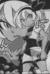 In The Gathering of Stars, she was seen eating in a café with her Machop and two Lasses after receiving an invitation letter for the Galarian Star Tournament. She was later seen at Wyndon Stadium, walking out onto the field for the tournament's opening ceremony.