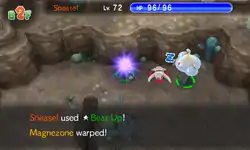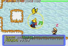 In Red Rescue Team and Blue Rescue Team, and Explorers of Time, Darkness and Sky, Beat Up is a move with 15PP. The user warps all allies on the floor, placing them up to 2 tiles away from the user; Beat Up only works on teammates while it doesn’t work on clients visiting the player’s team. The move will fail to warp a Pokémon if there's not enough space for it within the given area; the move considers only land tiles, even if the Pokémon can travel through non-standard tiles. This move is affected by Taunt.