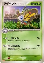 Beautifly (Japanese: アゲハント Agehunt) is a Grass-type Stage 2 Pokémon card. It is part of POP Series 1.