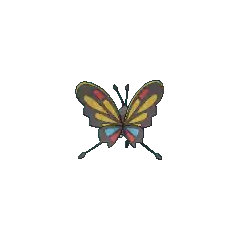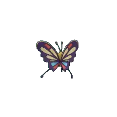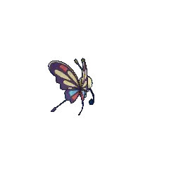 Beautifly has a long and curled black proboscis that it uses to drain bodily fluids from its prey. Additionally, this aggressive Pokémon will jab at foes with its proboscis if it is disturbed while collecting pollen. Beautifly is easily recognized by the colorful pattern on its wings. Its favorite food is nectar. The preferred habitats of a Beautifly are forests.