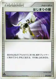 Beginning Door (Japanese: はじまりの扉 Door of Beginning) is a Trainer card. It was first released as part of the Arceus expansion.