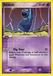 Beldum (Japanese: ダンバル Dumbber) is a Psychic-type Basic Pokémon card. It is part of the EX Deoxys expansion.