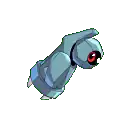 Beldum is a robotic Pokémon that has a long body with a set of claws sticking out of its rear end. It has one large, red eye in the center of its nearly spherical head, which is set into a ball-and-socket joint at its front end. A short crest projects from its body and extends over its head.