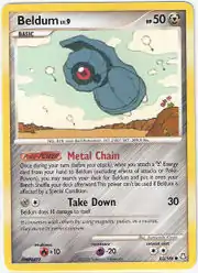 Beldum (Japanese: ダンバル Dumbber) is a Metal-type Basic Pokémon card. It is part of the Legends Awakened expansion.