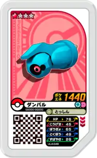 Beldum (Japanese: ダンバル Dumbber) is a Grade 1 Pokémon Ga-Olé disk. It is part of the fourth Ultra Legend set.
