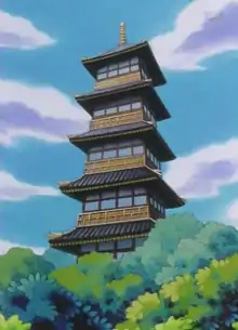 The Bell Tower (Japanese: スズのとう Bell Tower), known as the Tin Tower prior to Pokémon HeartGold and SoulSilver and in Pokémon Brilliant Diamond and Shining Pearl, is a location of Johto positioned in the northeast of Ecruteak City. Ho-Oh formerly perched at the top of this ten-story tower, but flew away after the other tower in the west of Ecruteak City burned down mysteriously. The Bell Tower is an icon of Ecruteak City and a place of high sanctity among people in Johto, with only select people being qualified to enter it.