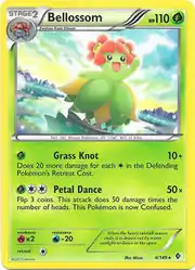 Grass Knot and Petal Dance are both moves in the Pokémon games that Bellossom can learn. This card's Pokédex entry comes from Pokémon Black 2 and White 2.