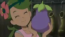 In A Recipe for Success!, Mallow realized that a group of Fearow liked a Belue Berry whilst helping out at Oranguru's place. Afterwards, Mallow prepared them a meal of Belue and Durin Berries.